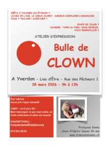 Un atelier clown pour explorer et développer votre fantaisie, votre imagination, votre joie de vivre.